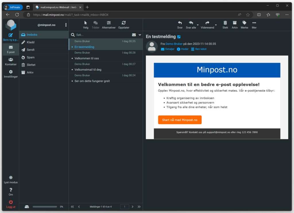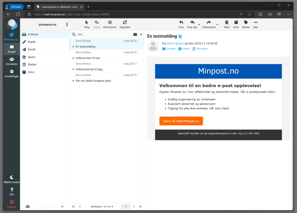 Webmail-programmet er lynraskt og gir deg hurtig søk og oppslag. Dette er produktet for deg som ikke liker å vente.